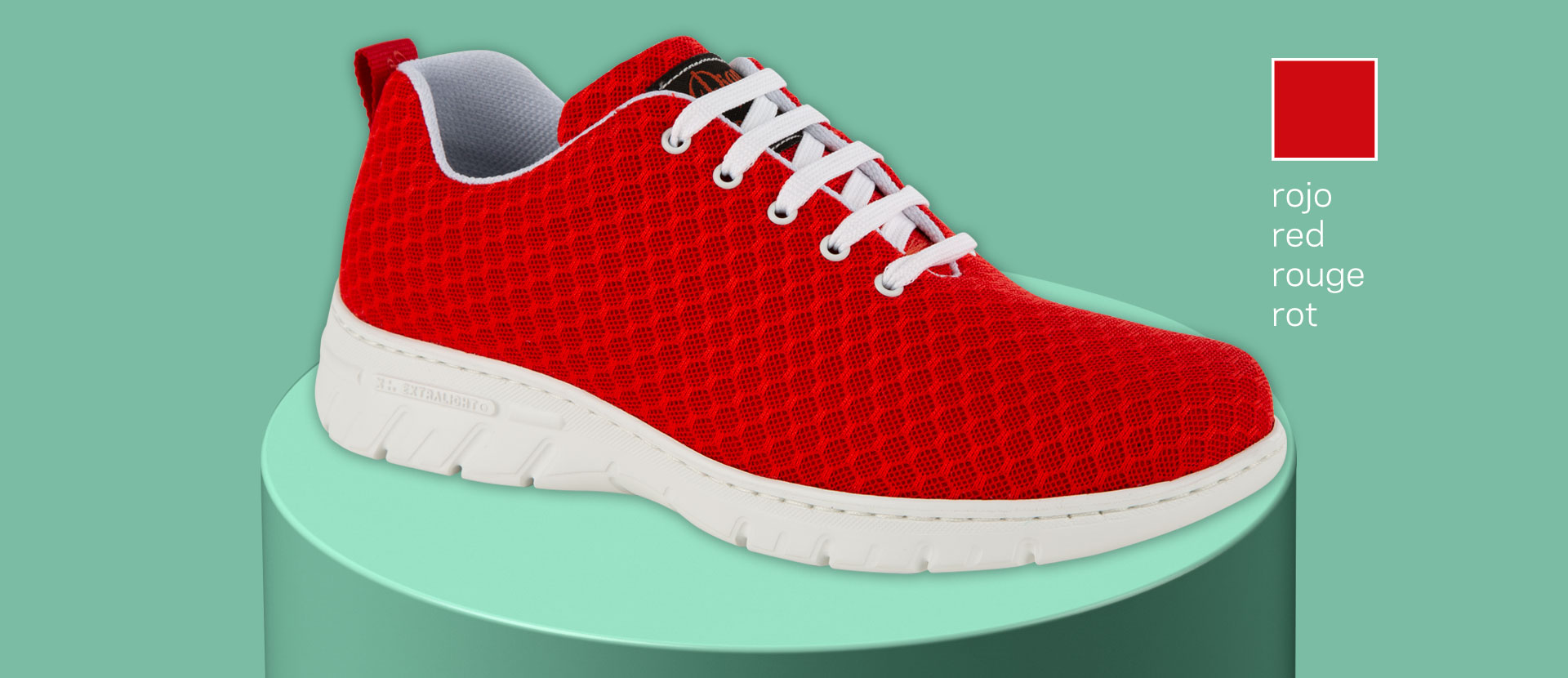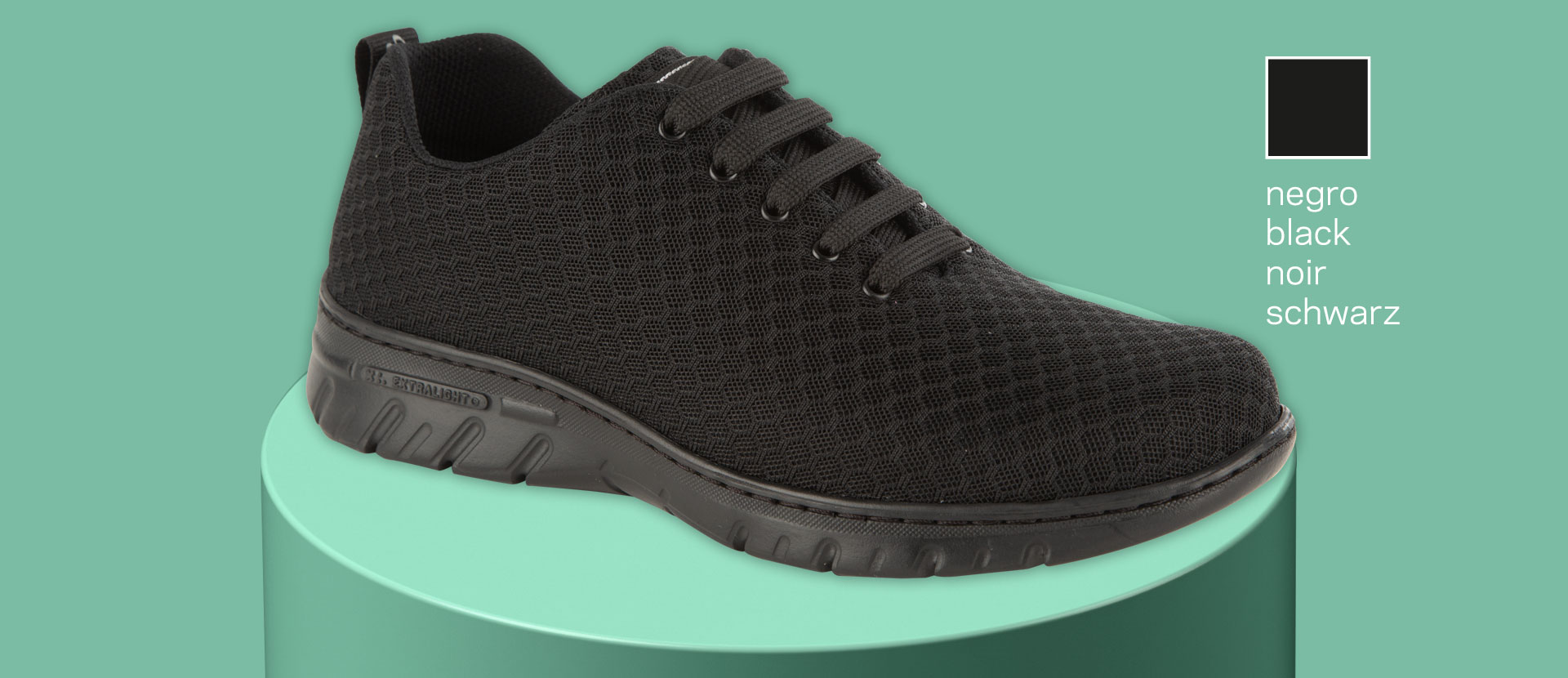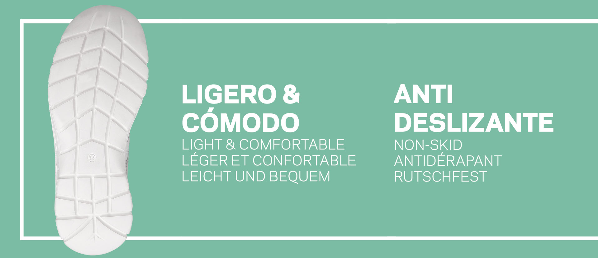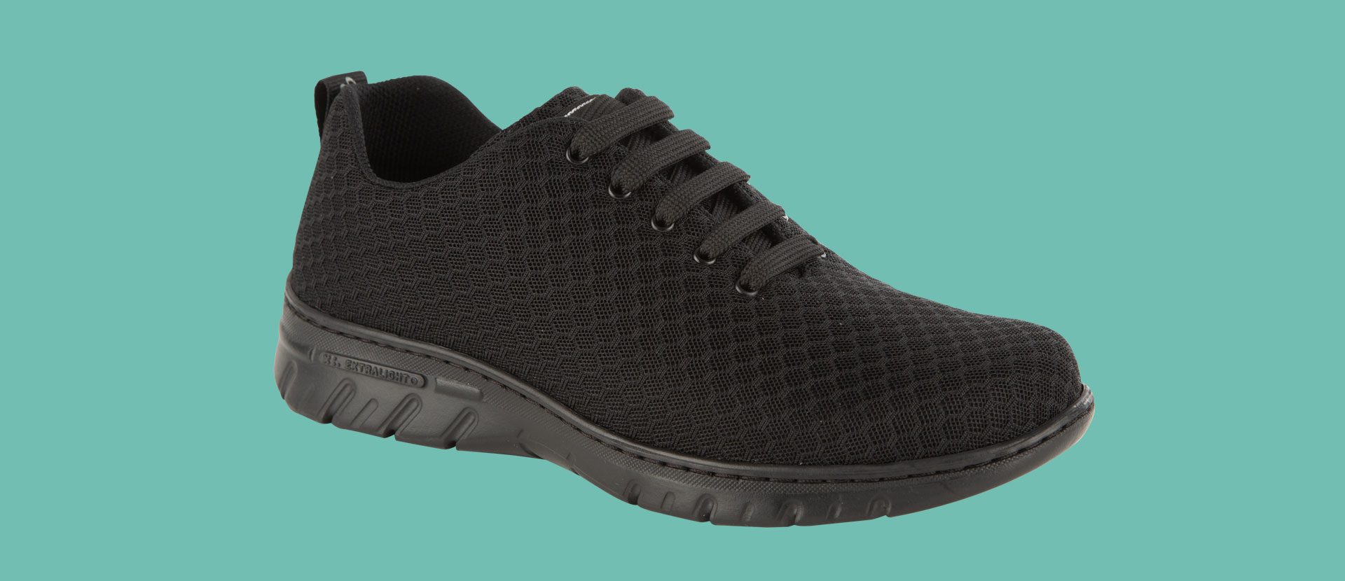 Zapatilla tipo blucher con corte de una sola pieza, sin costuras y con cierre de cordones. Corte textil transpirable y repelente a liquidos D’COVER DRY®, forrado interior de material textil acolchado D’DRY®, collarín acolchado en el tobillo para evitar rozaduras. Horma recta de puntera redondeada. Contrafuerte de dureza suficiente para sujetar el calcáneo. Plantilla acolchada de material textil sobre espuma de poliuretano termoconformado con tratamiento antibacterias y carbón activado. Suela de material compuesto EVA XL EXTRALIGHT®, ultra ligera, confortable, flexible y antideslizante, con diseño de pastillas planas, cantos vivos y acanaladuras amplias para facilitar la evacuación de líquidos. Apto para lavado en lavadora hasta 40º.
