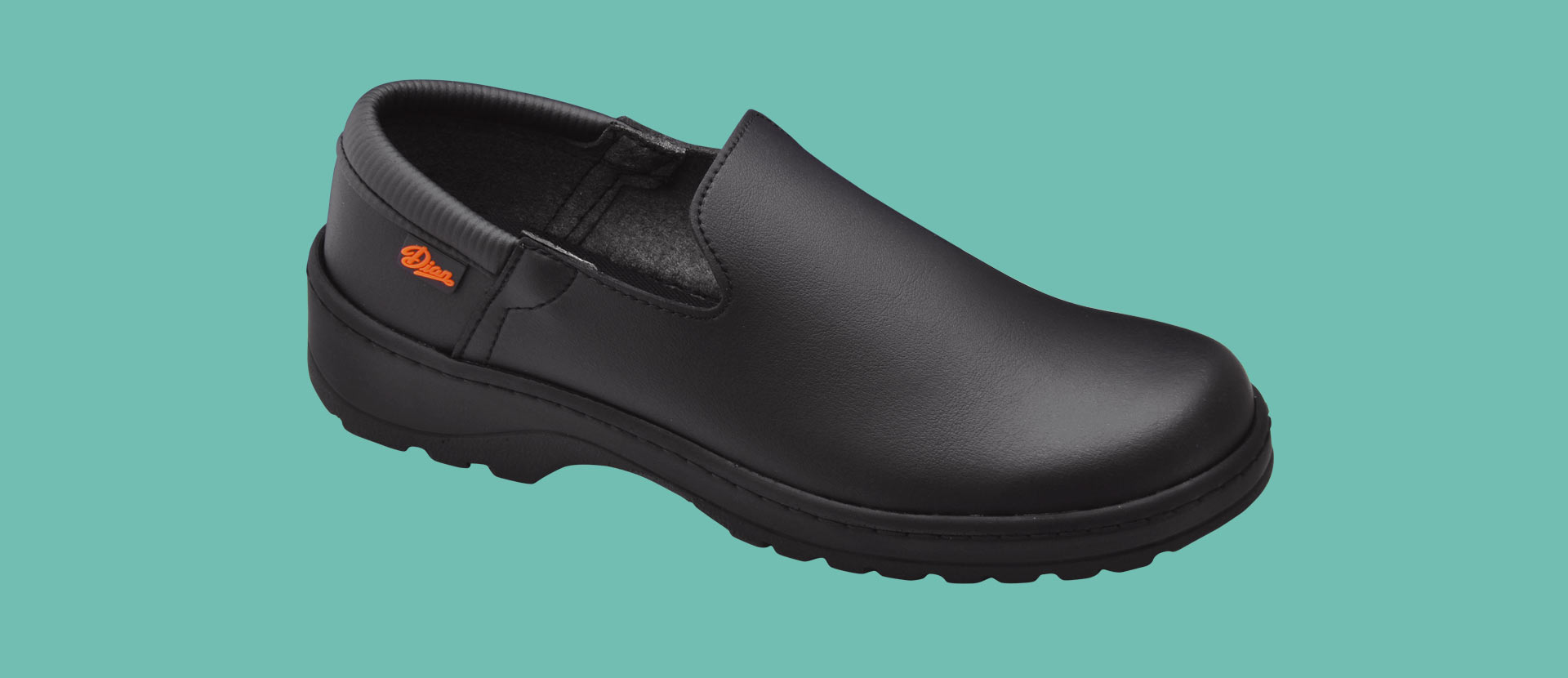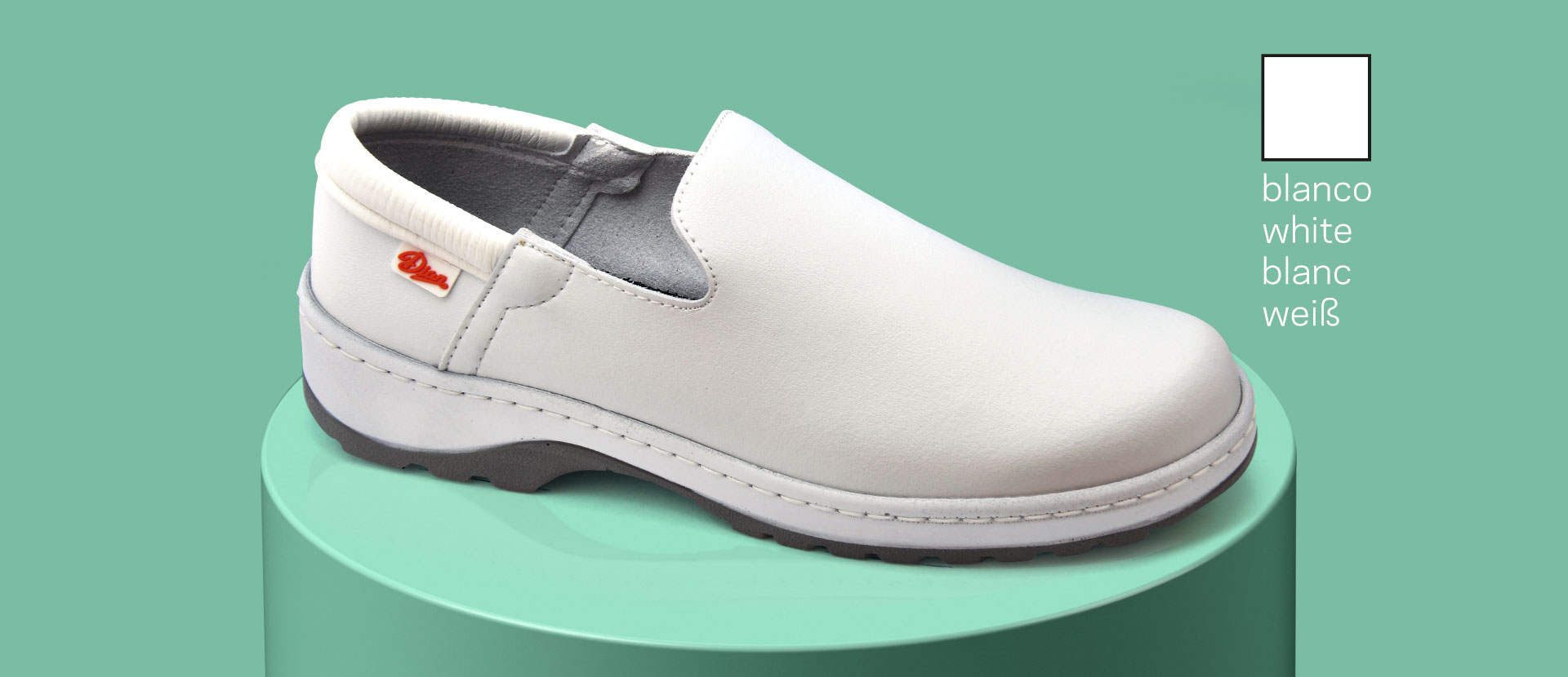 Zapato antideslizante de gran coeficiente en seco y húmedo con resaltes acanalados en la suela para facilitar la evacuación de líquidos evitando el deslizamiento en suelos mojados, corte de microfibra D’COVER OEKOTEX ® transpirable y lavable a 40º con acolchado en el talón para evitar que el zapato se descalce al caminar o en posturas de flexión extrema, protegiendo el pie de rozaduras, plantilla interior acolchada de espuma de poliuretano con tratamiento antibacterias, fabricado mediante cosido de seguridad suela-corte antibacteriana para asegurar la unión de las piezas al someterlos a lavados en caliente.