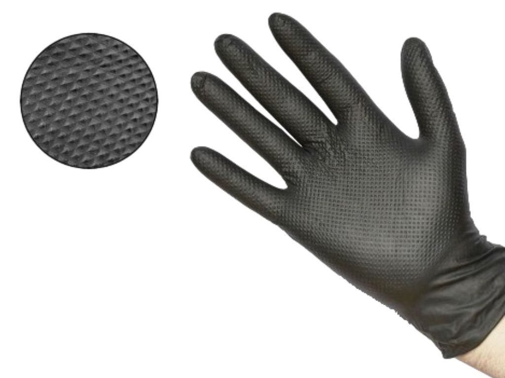 GUANTES DE NITRILO NEGROS DIAMANTADO EN AMBAS CARAS 8.5GR